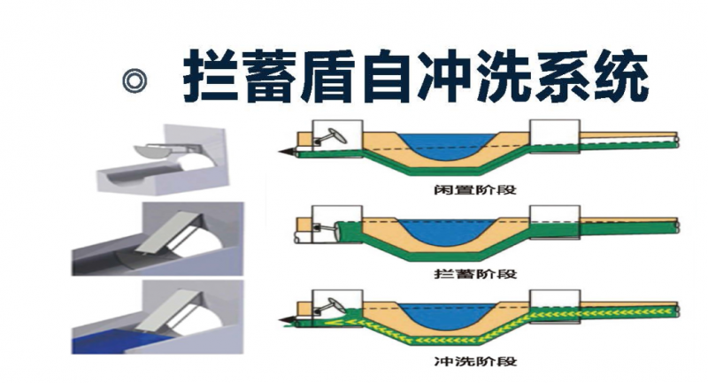 拦蓄冲洗盾的工作状态分为四个步骤: